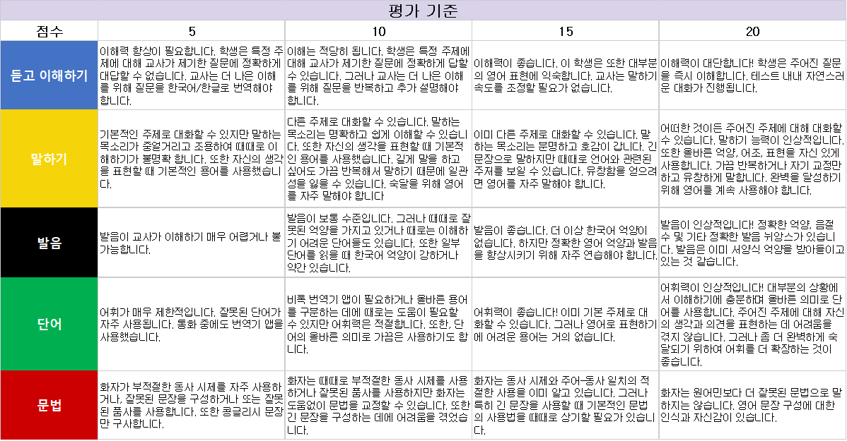 저희 레벨테스트는 교재 배정을 위한 약식 절차이므로 맹신은 금물입니다.